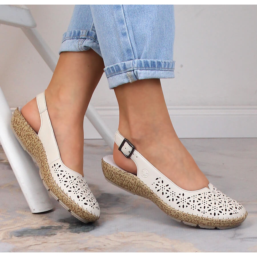 Rieker Kožené pohodlné prolamované sandály béžové Rieker 44861-60 béžový