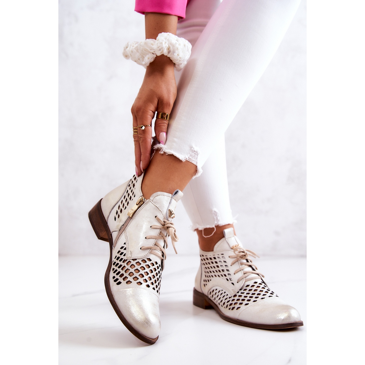 Podrobnosti: Kožené prolamované boty Nicole 2704/004 bílá a zlatá bílý