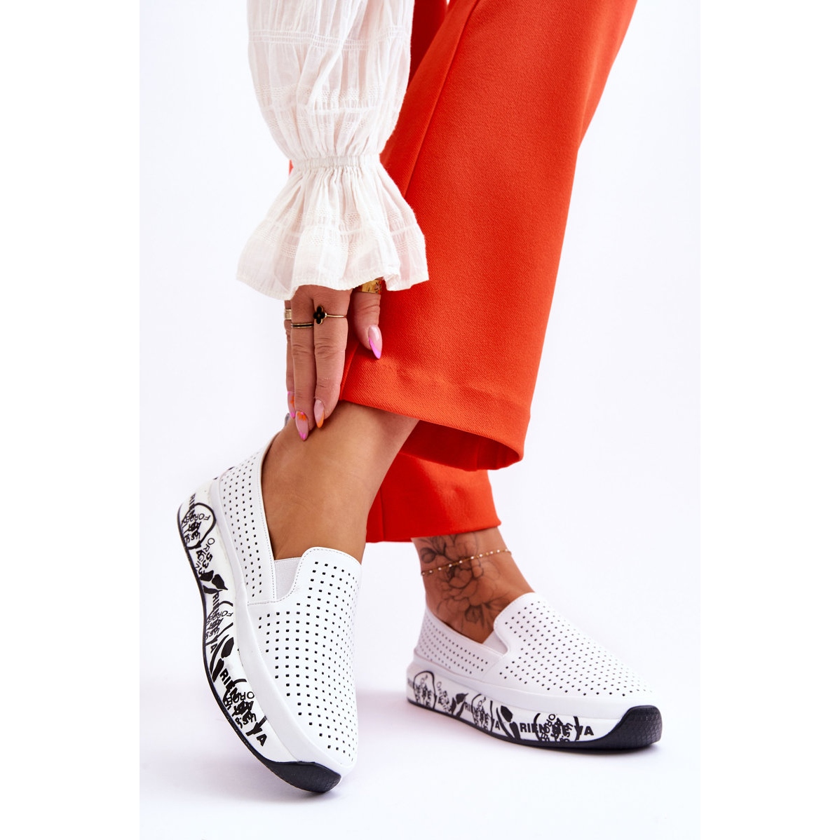 S.Barski S.Barski Kožené prolamované nazouvací tenisky White Gedra bílý