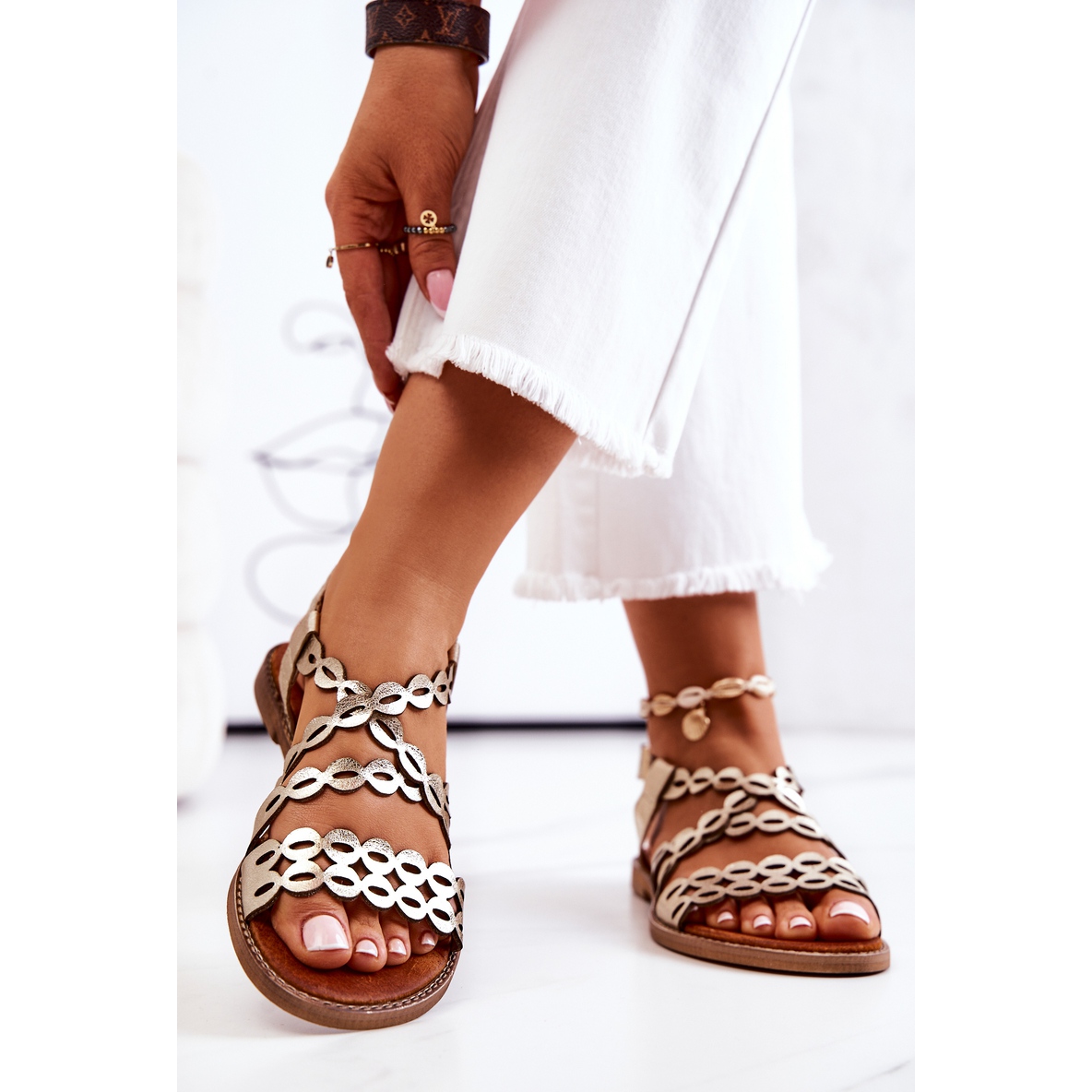 Objevte jedinečný styl se sandály Lewski 3022, které se tuto sezónu staly nutností! Jsou vyrobeny z vysoce kvalitní přírodní kůže a vyznačují se atraktivním prolamovaným vzorem, který dodává eleganci a lehkost. Tyto klasické ploché sandály, ideální pro letní dny, potěší nejen svým vzhledem, ale také poskytují pohodlí díky nastavitelnému pásku s přezkou, který umožňuje dokonalé přizpůsobení noze.