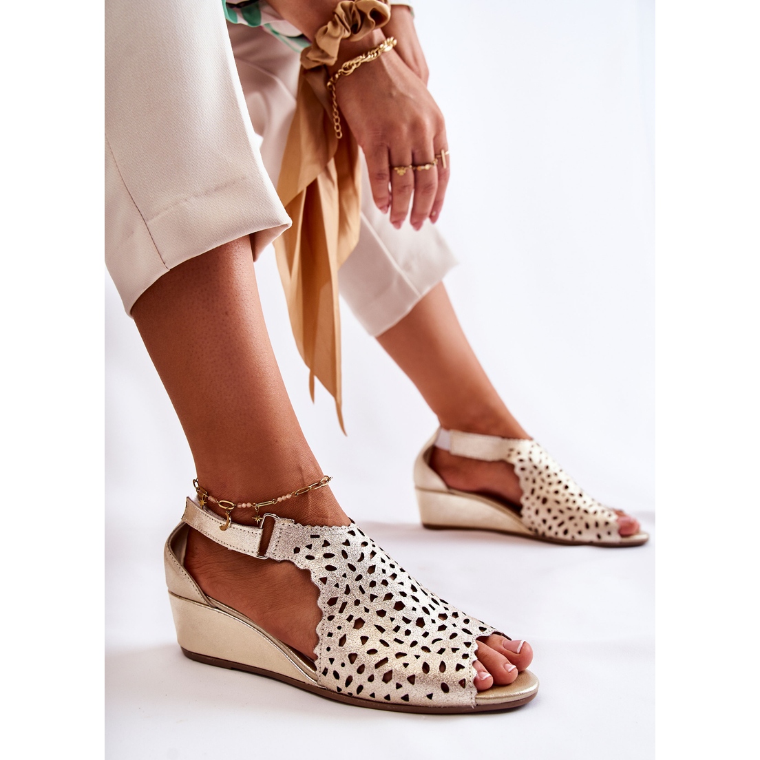 Podrobnosti: PA2 Kožené Prolamované Sandály Na Klínu Zlaté Sellena zlatý