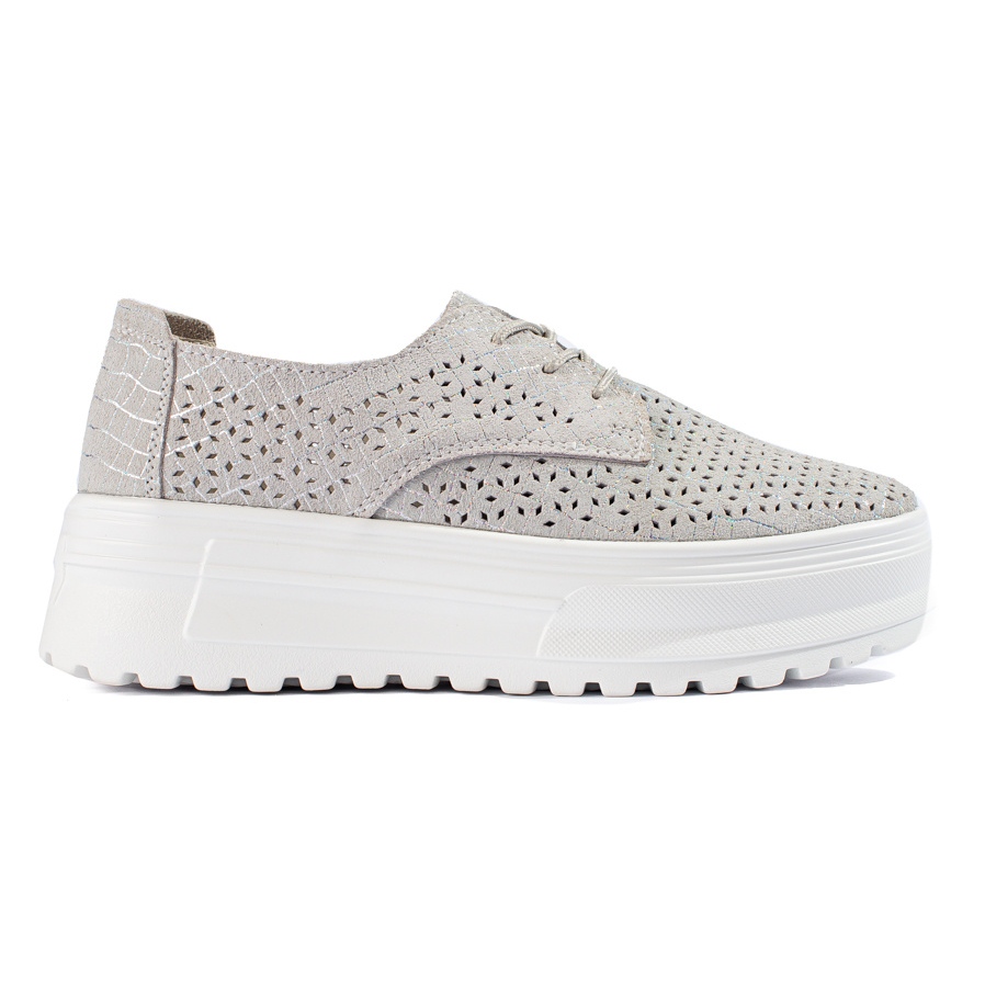 SHELOVET Kožené prolamované tenisky na vysoké platformě Shelovet silver šedá