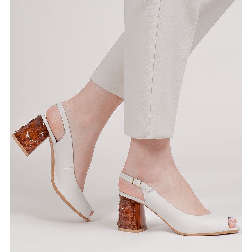 Marco Shoes Marco Shoes Kožené sandály bílé s podpatkem 3D 1517P bílý