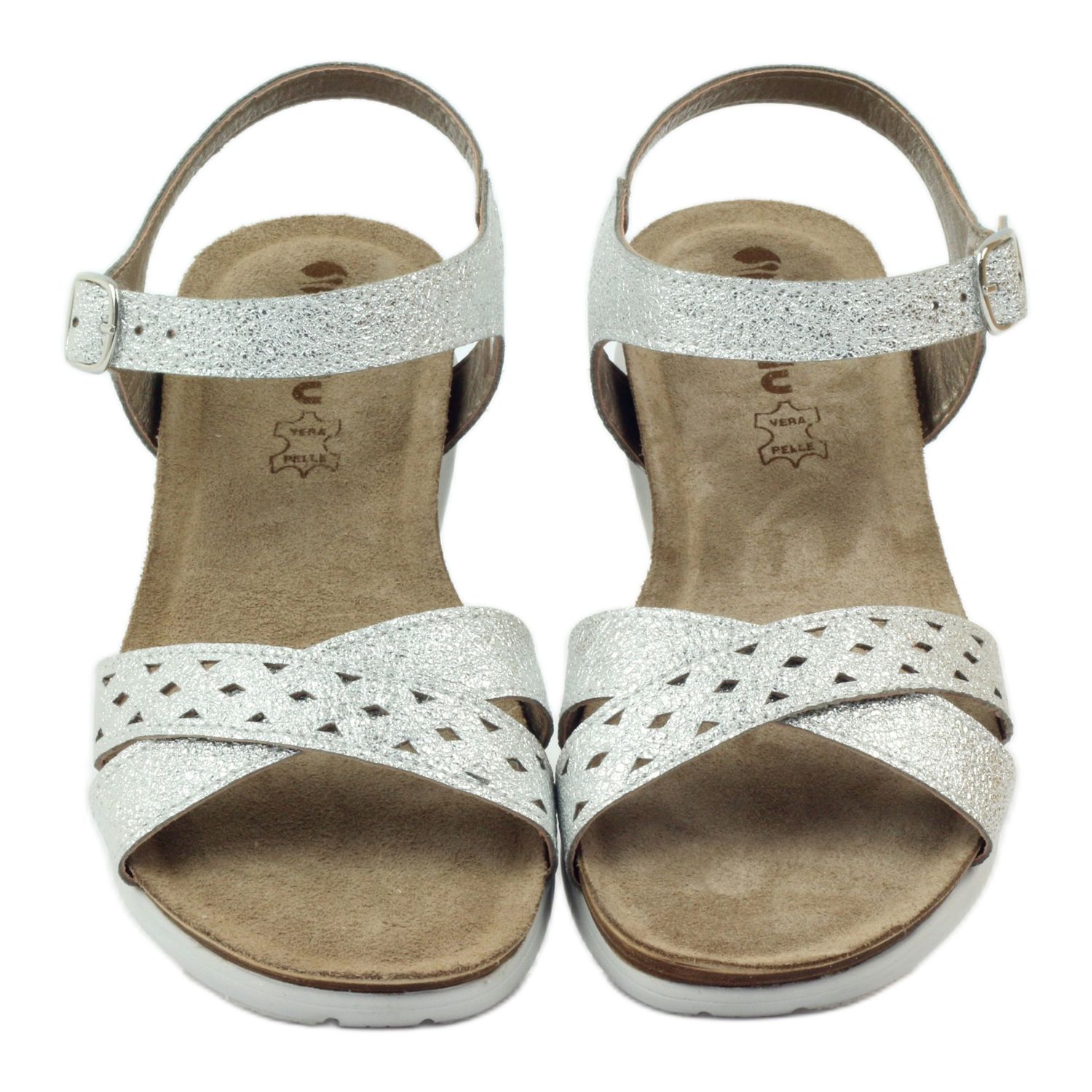 Inblu Kožené sandály Inblu 038 stříbrná vložka šedá