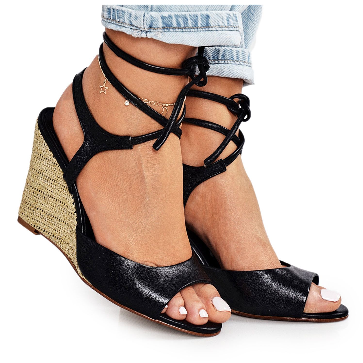 Objevte eleganci a pohodlí v kožených sandálech na klínku Laura Messi 1944 v černé barvě. Tyto jedinečné boty byly pečlivě vyrobeny z přírodní kůže, která zaručuje nejen estetický vzhled, ale také odolnost. Jedinečný klín zdobený slaměným copánkem dodá každému stylingu trochu lehkosti a je tak ideální volbou pro letní dny.