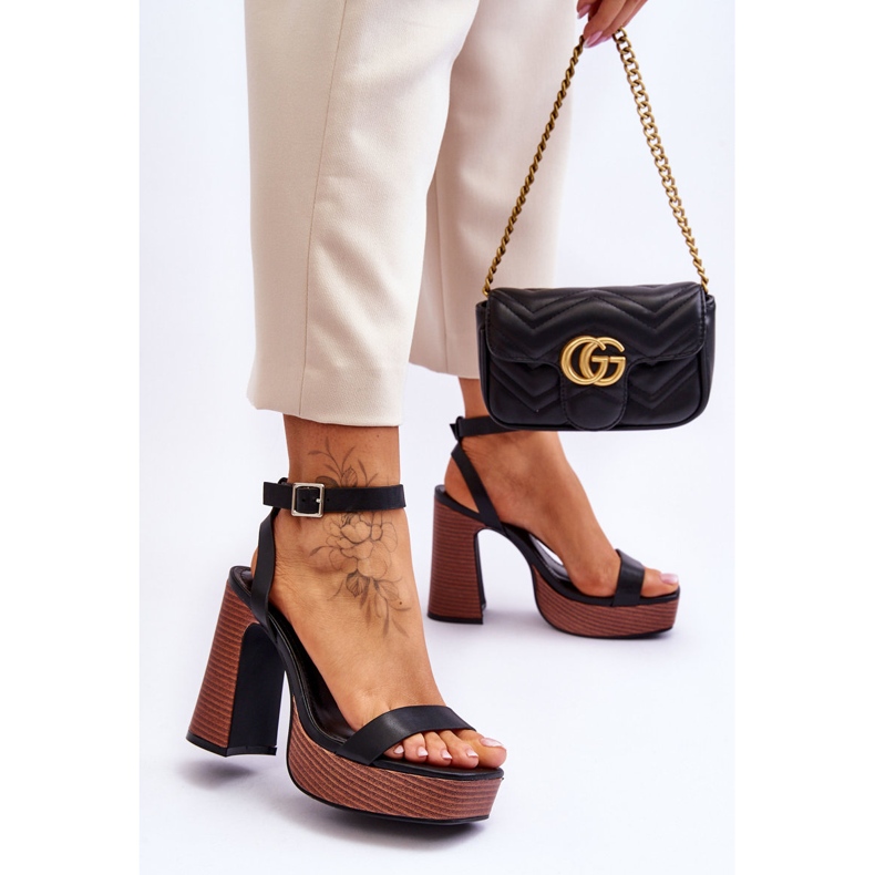 Inna marka Kožené Sandály Na Robustní černé Platformě Marina černá