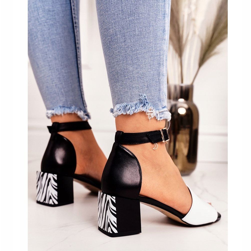 Laura Messi Kožené sandály na vysokém podpatku Laura Messi 2285 Zebra Black bílý