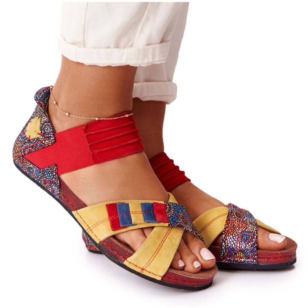 Maciejka Kožené sandály s manžetou Maciejka 03375 červeno-žlutá červené
