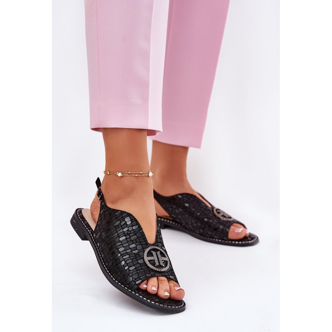 S.Barski S.Barski Kožené sandály s plochým podpatkem s ozdobou S. Barski KV51-094 černé černá