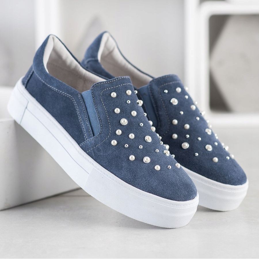 Filippo Leather Slipons With Pearls v modré barvě je ideální pro ženy, které ocení eleganci a pohodlí v každodenním stylu. Tyto jedinečné dámské tenisky kombinují moderní design s klasickými materiály a nabízejí jedinečný vzhled, který se odlišuje od ostatních modelů.