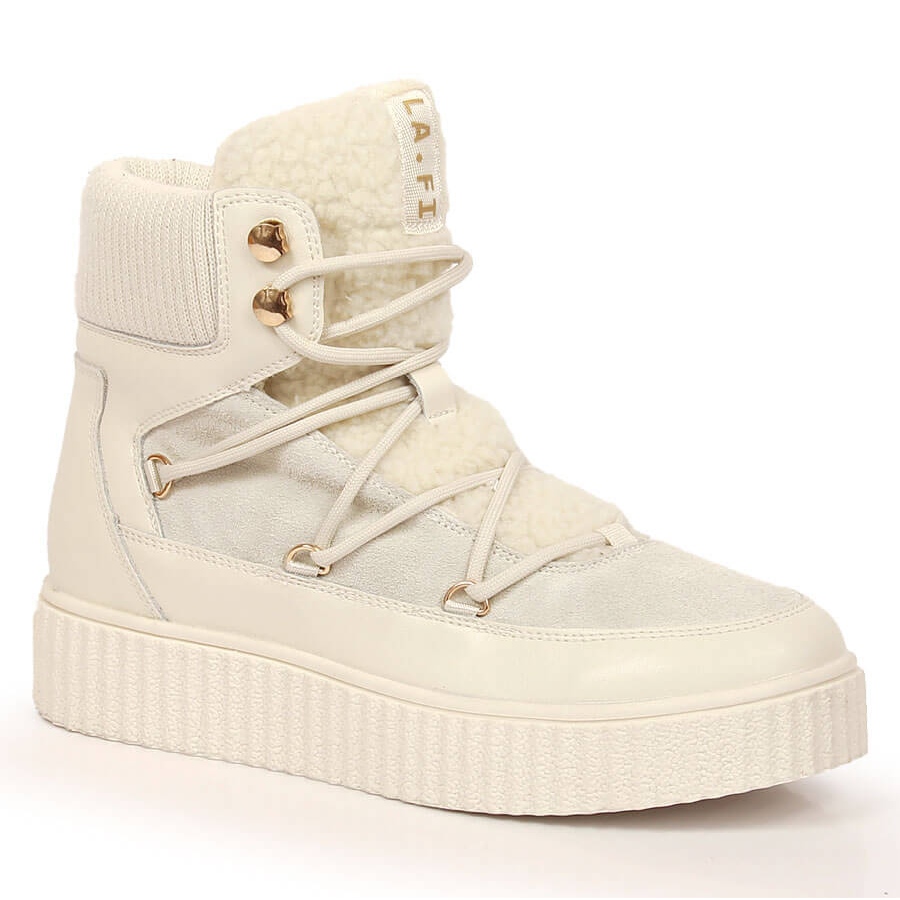 Laura La.Fi Kožené šněrovací kozačky na světle béžové platformě Laura La.Fi béžový