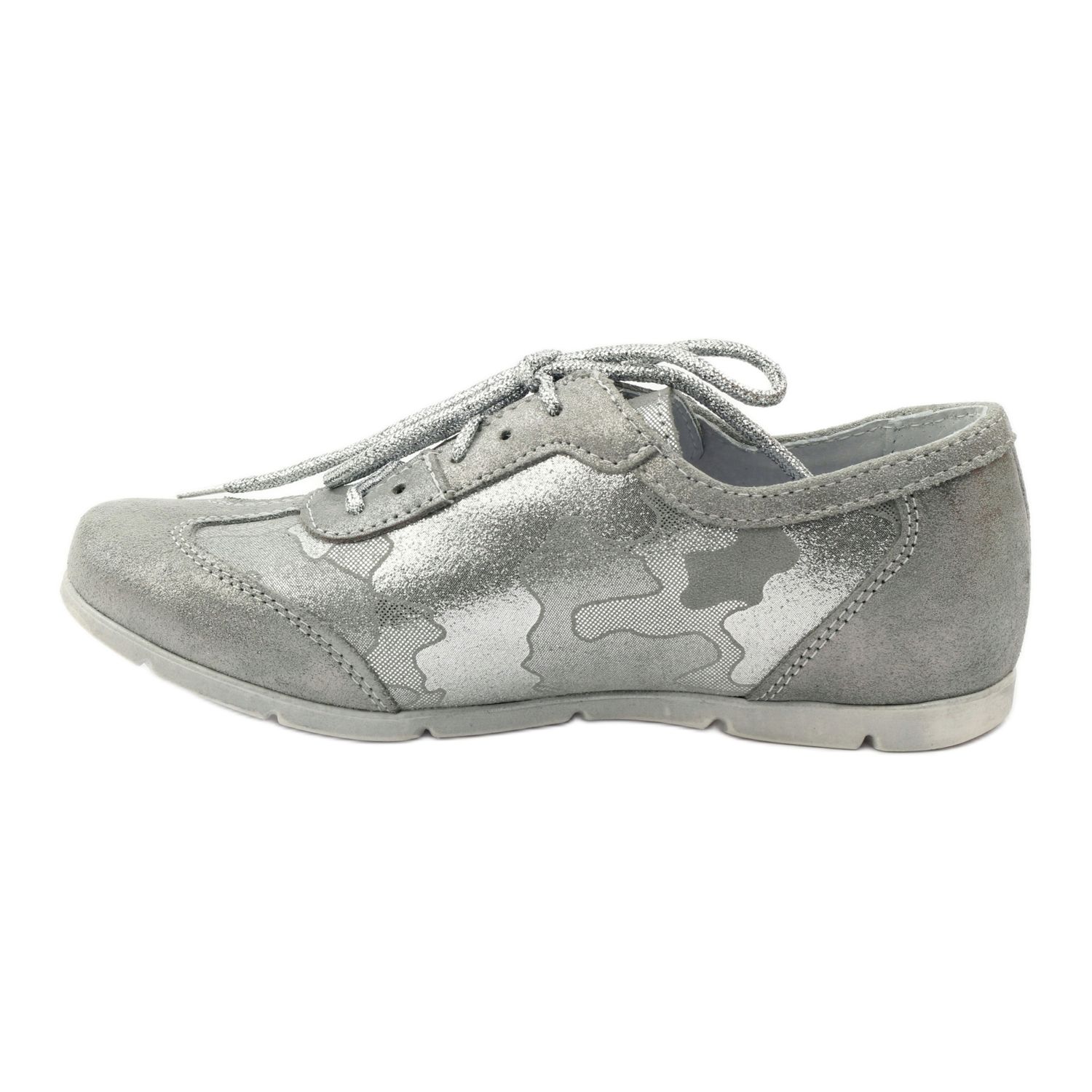 Oblast Girls 'Girls' Sports-Up boty ve stříbrné šedých jsou perfektní volbou pro malé módy, kteří si cení pohodlí a stylu. Model WZ.4347 je vyroben z velmi měkké, přírodní kůže, díky které se boty perfektně hodí k noze a zajišťují svobodu pohybu. Stříbrná kamuflážní barva jim dává moderní charakter a šněrovací upevnění umožňuje přesné přizpůsobení.