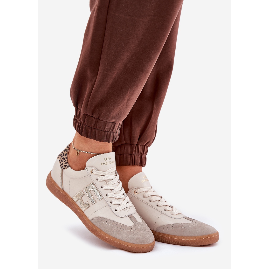 CheBello CheBello Kožené sportovní boty tenisky ženské leopard chello 4640 béžové béžový