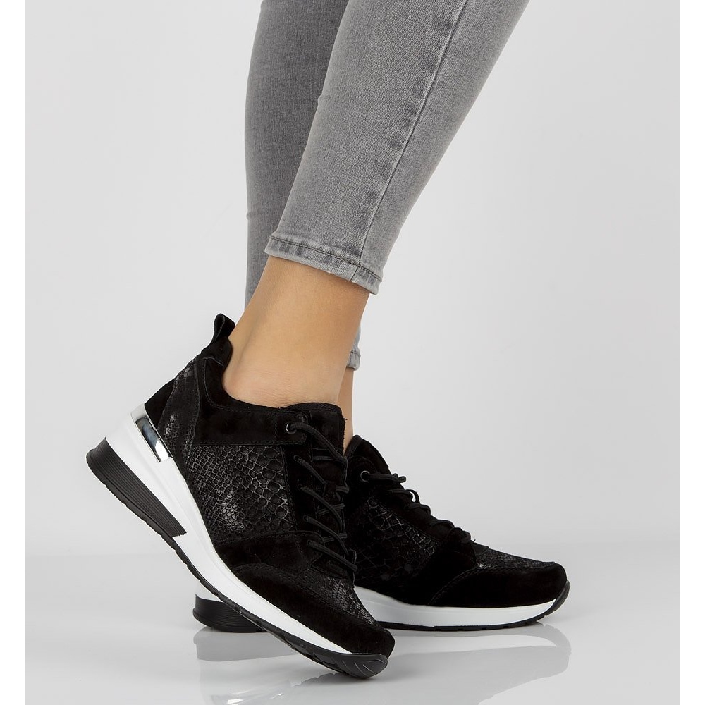 Výška podpatku 5 cm a výška platformy 1,5 cm dodávají pohodlí navíc a díky nízkému svršku (6,5 cm) se boty perfektně hodí k různým stylům. Za pozornost stojí jejich univerzální, černá barva, která se snadno hodí ke každému šatníku.