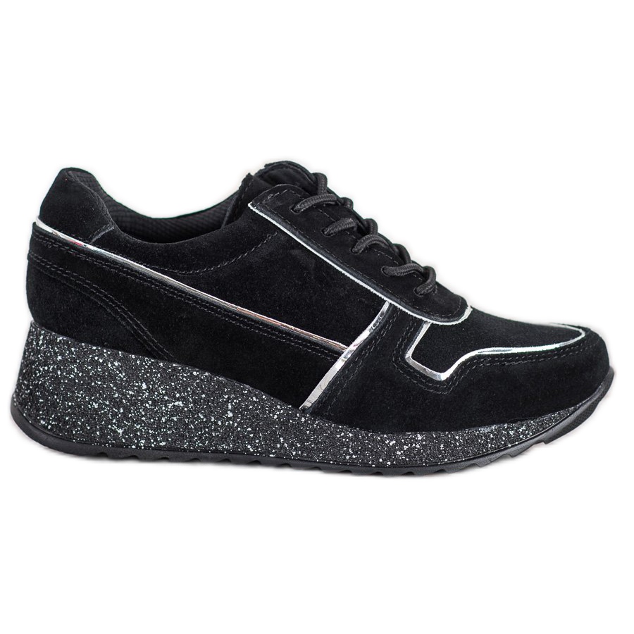 Objevte elegantní styl a pohodlí s koženými teniskami Filippo s třpytivou platformou v černé barvě! Tato jedinečná sportovní obuv je dokonalou kombinací moderny a klasického stylu, která dokonale zapadá do aktuálních trendů.