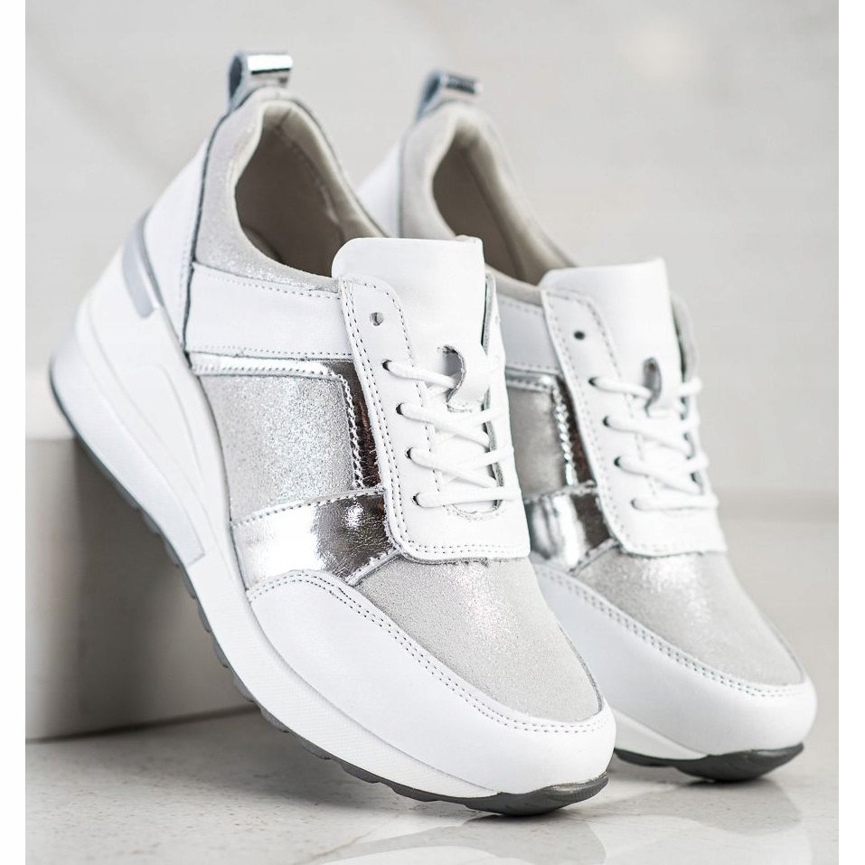 Kožené tenisky s třpytkami VINCEZA bílý stříbro