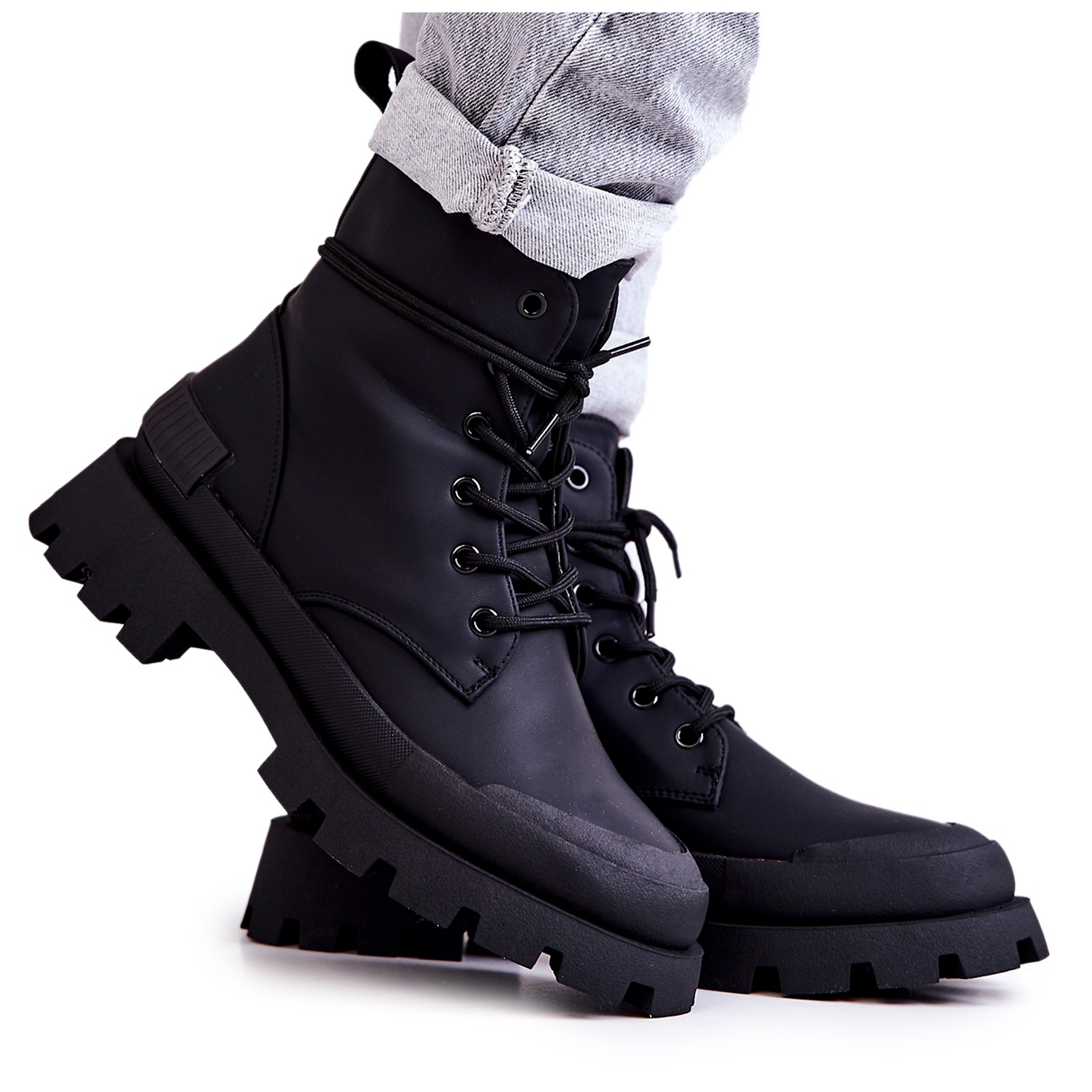 Inna marka Kožené teplé boty vázané černý Racquell černá