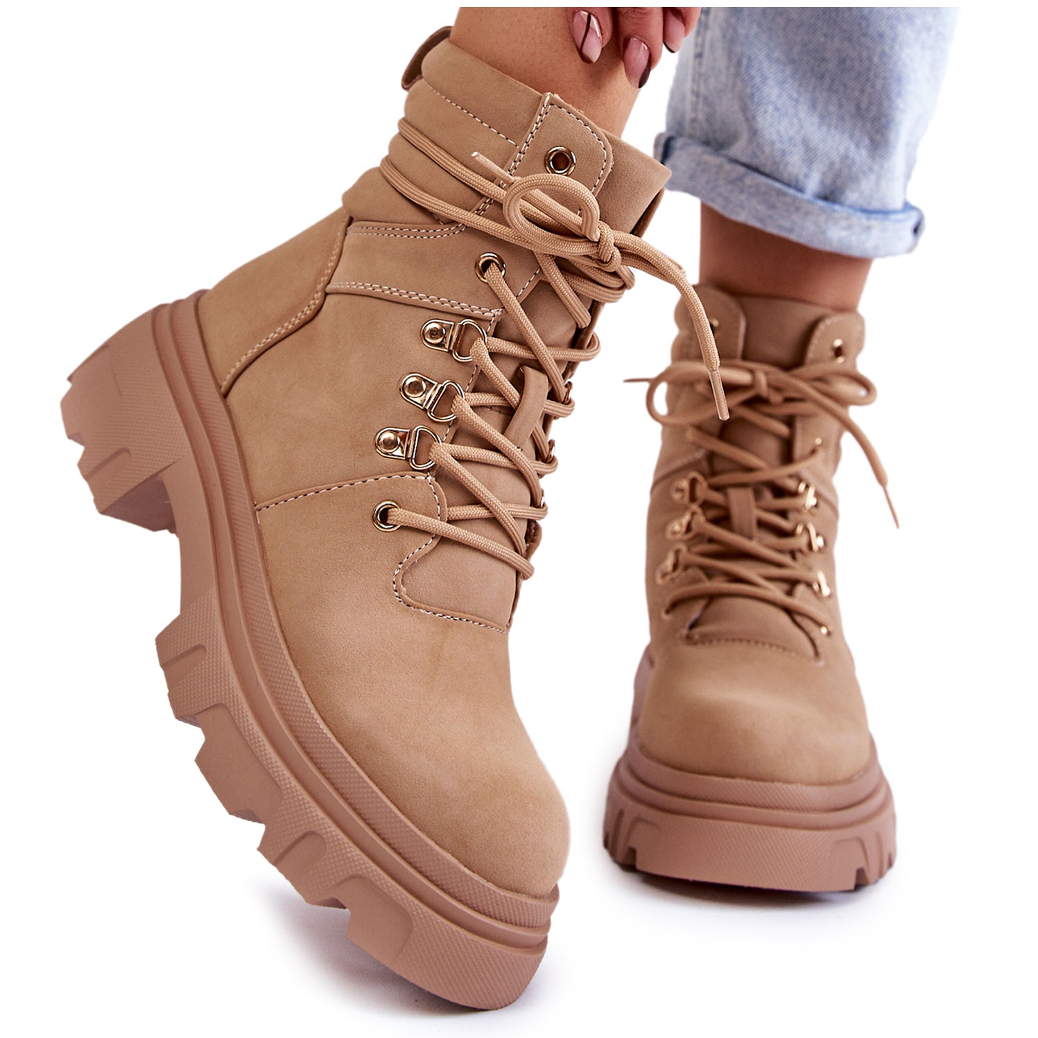 Inna marka Kožené teplé šněrovací boty Béžová Merisha béžový