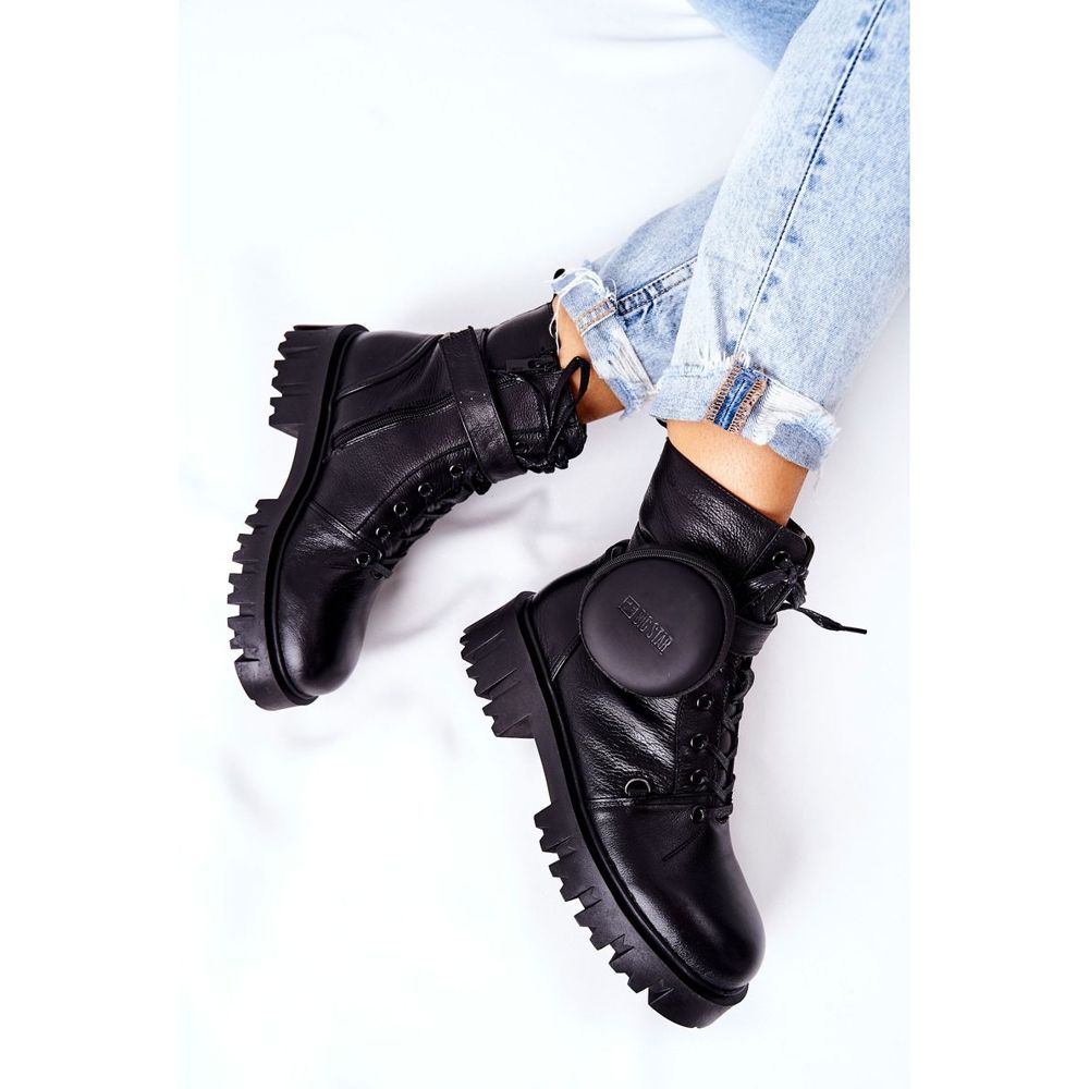 Kožené zateplené pracovní boty s pasem Big Star II274430 v černé barvě jsou ideální pro ženy, které oceňují pohodlí a módní vzhled. Tyto klasické kotníkové boty jsou vyrobeny z vysoce kvalitní přírodní kůže, která zajišťuje jejich odolnost a elegantní styl. Vnitřek bot je zateplen dekou na boty, takže vaše nohy budou pohodlně chráněny i v chladnějších dnech.