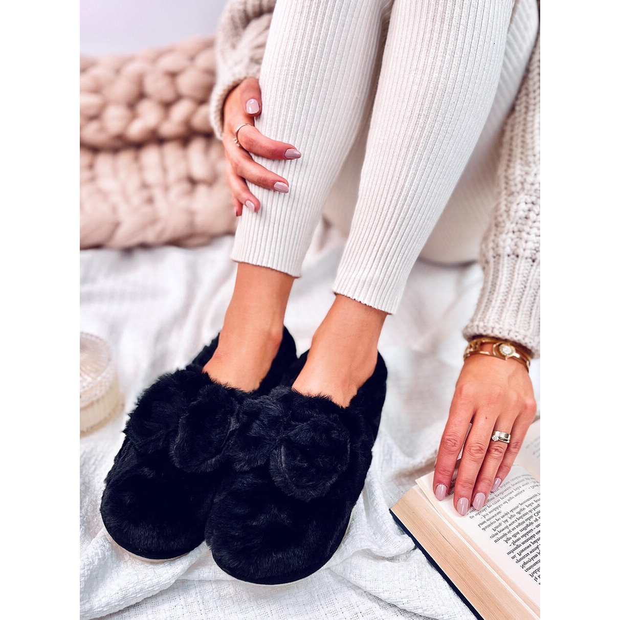 ** Kožešinové pantofle s černým lukem Emres - váš luxus doma! **