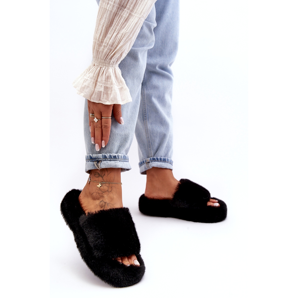 Inna marka Kožešinové ženské kožešinové pantofle černé černá