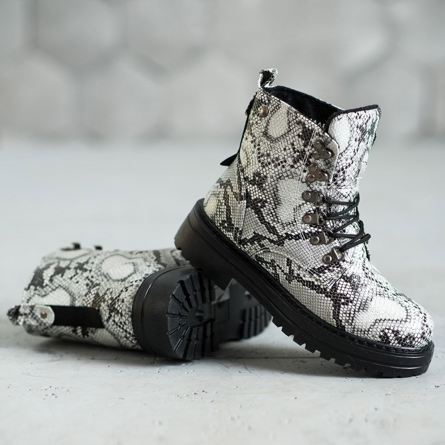 Objevujte módu s nejnovějšími šněrovacími kozačkami značky SHELOVET! Tyto jedinečné dámské boty potěší nejen svým originálním vzhledem, ale také poskytují pohodlí a funkčnost, která se bude skvěle hodit při každodenním stylingu. Tyto kozačky vyrobené z vysoce kvalitní ekologické kůže s krásným motivem hadí kůže jistě zaujmou a budou perfektním doplňkem vašeho šatníku.