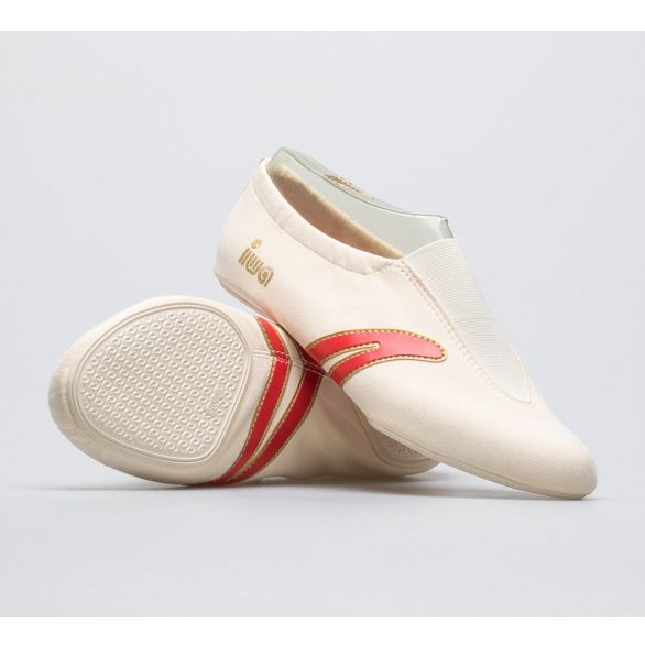 Balerínky IWA 502 jsou kultovním modelem gymnastických bot IWA GIMNASTICS. Jsou vyrobeny z pevného velurového materiálu (mikrovlákna), který zajišťuje jejich vysokou kvalitu a odolnost. Barvy balerínků jsou krémově béžová, červené pruhy a zlaté akcenty. Logo značky potvrzuje pravost a vynikající kvalitu těchto bot. Jsou k dispozici v široké škále velikostí (od 31 do 47), díky čemuž jsou vhodné pro děti i dospělé.