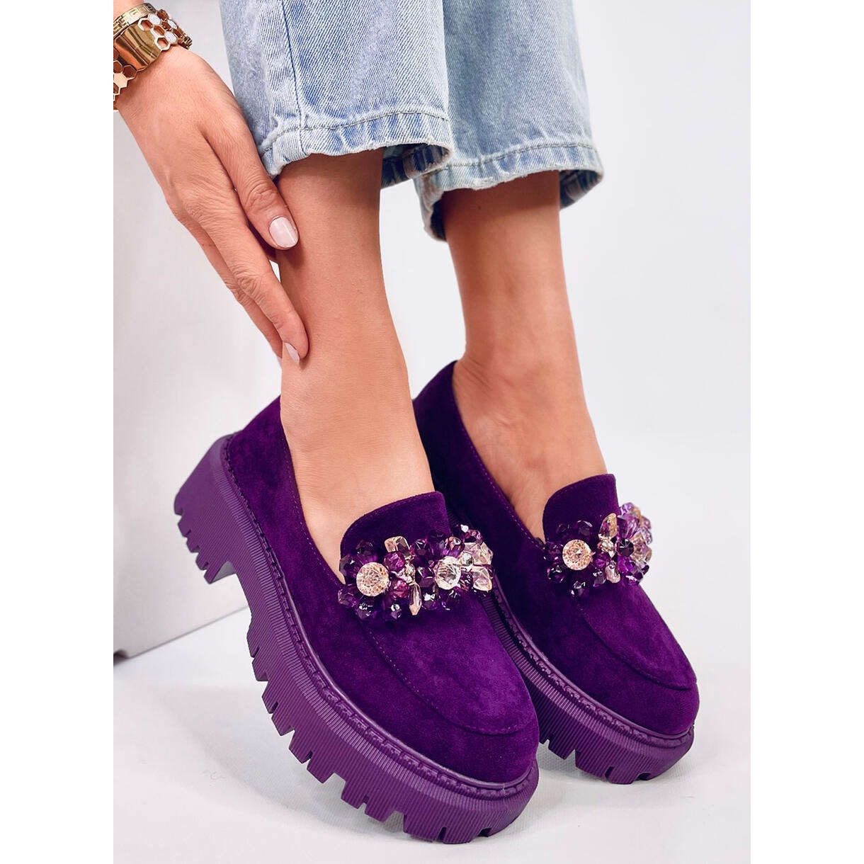 Mokasíny Heidi Purple s krystaly jsou perfektní volbou pro ženy, které chtějí vyčnívat z davu. Tyto krásné fialové mokasíny na ploché platformě spojují eleganci a mimořádný styl, a to díky doplňkům v podobě lesklých krystalů. Jedná se o perfektní každodenní boty, které lze úspěšně kombinovat s formálnějším oblečením a dodají tak každému outfitu punc extravagance.
