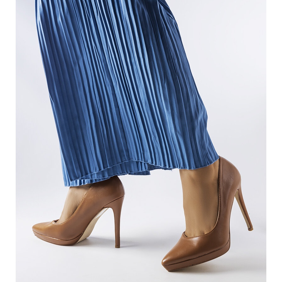 Poznejte Kristininy hnědé klasické vysoké podpatky, které potěší svým elegantním a ženským vzhledem. Tyto boty vyrobené z vysoce kvalitní eko kůže Camel jsou perfektní volbou pro letní a jarní období. Jejich univerzální barva znamená, že je můžete kombinovat s každodenními i formálnějšími styly.