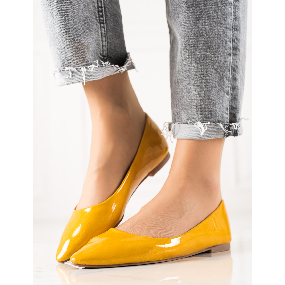 Představujeme Patent Pointed Ballet Flats v krásné intenzivní žluté barvě od výrobce Encor. Tyto jedinečné boty jsou dokonalou kombinací elegance a pohodlí, ideální jak pro každodenní nošení, tak pro formálnější příležitosti.