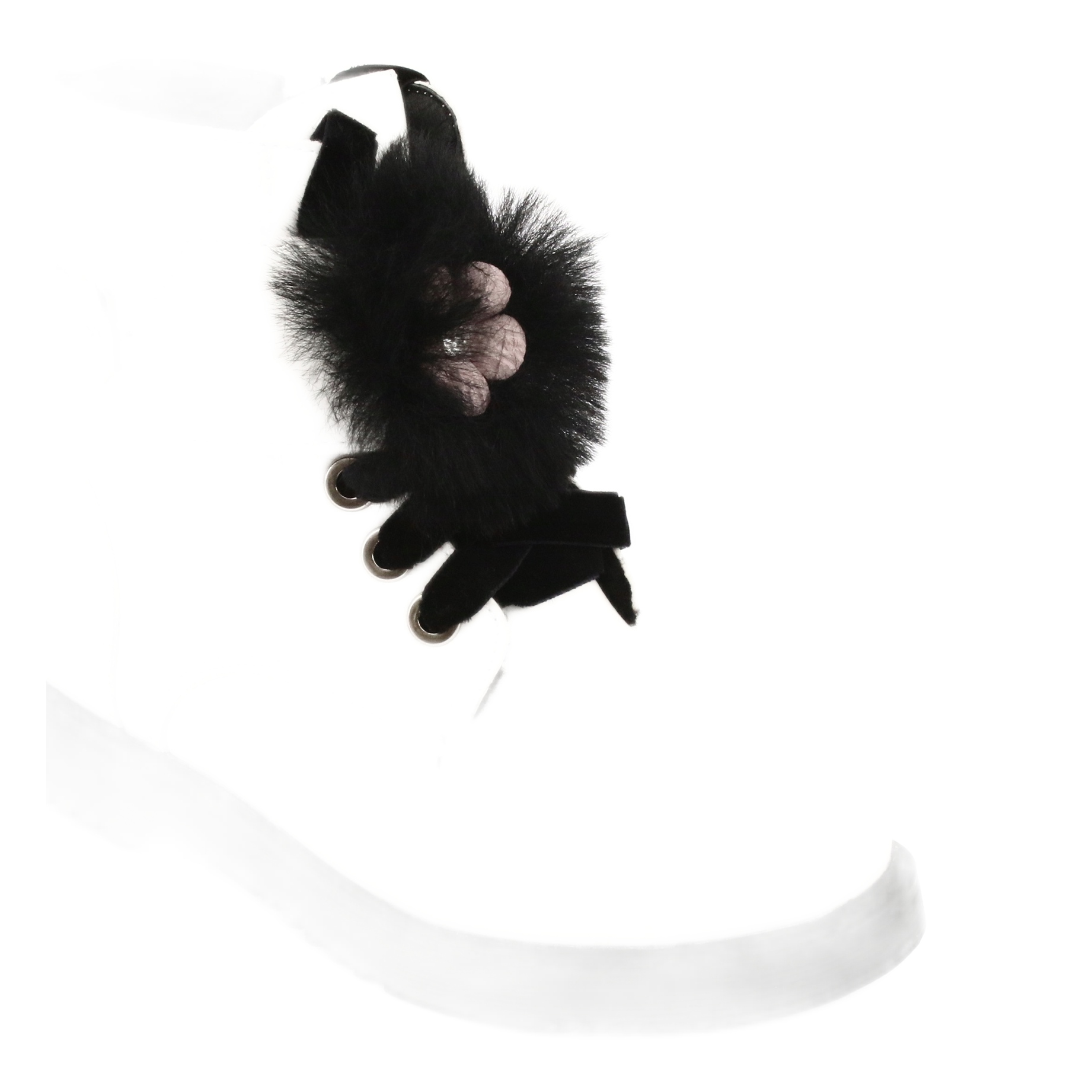 Černá kožešina dodává punc luxusu a stylová pudrová květina zdobená flitry, připevněná na pásku, dodává celku dívčí charakter. Díky šněrovacímu systému a intuitivnímu zapínání na zip si tyto elegantní boty nazou i ty nejmenší milovnice módy.