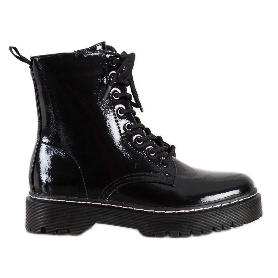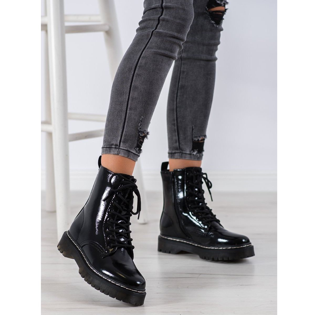 SHELOVET Lakované bovver boty mají horní výšku 17-18 cm a platformu 2 cm, což jim dodává další kouzlo a zdůrazňuje nohy. Nášlapná podrážka poskytuje dobrou přilnavost, díky čemuž jsou vhodné pro každodenní použití jak v městském prostředí, tak na procházkách.