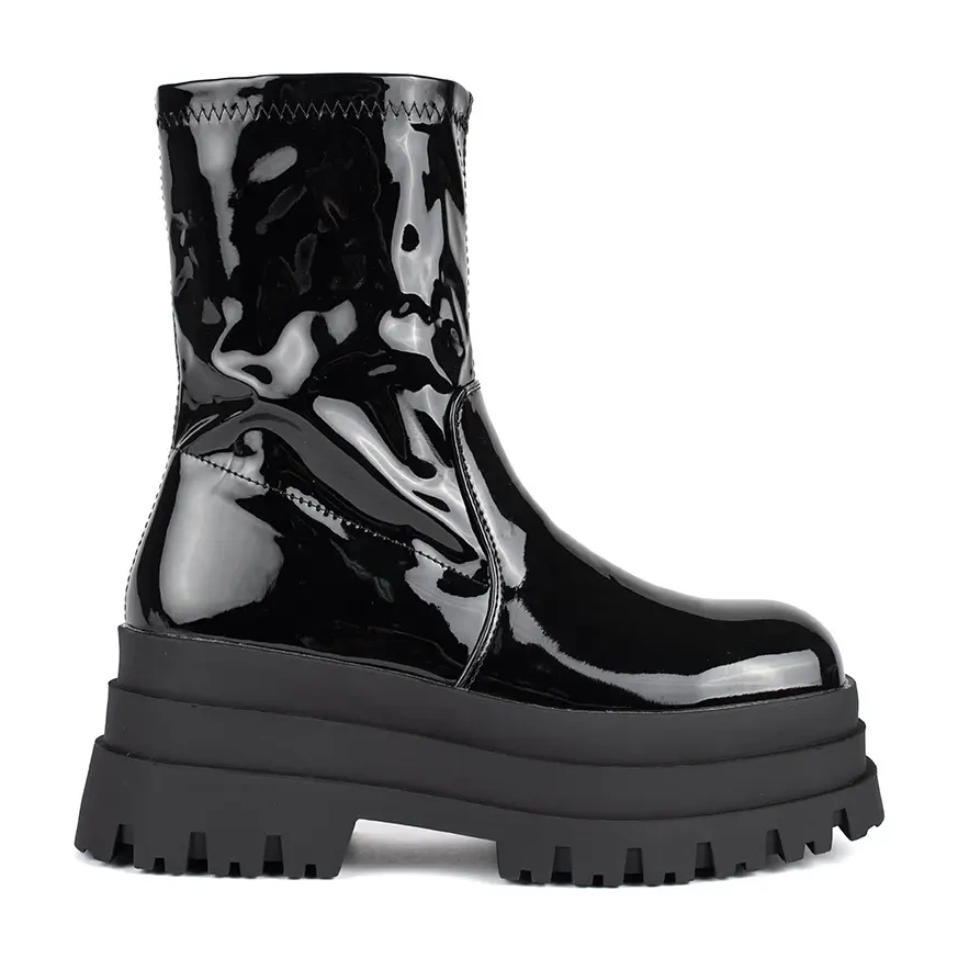 Podrobnosti: Lakované černé kotníkové boty na vysoké platformě černý