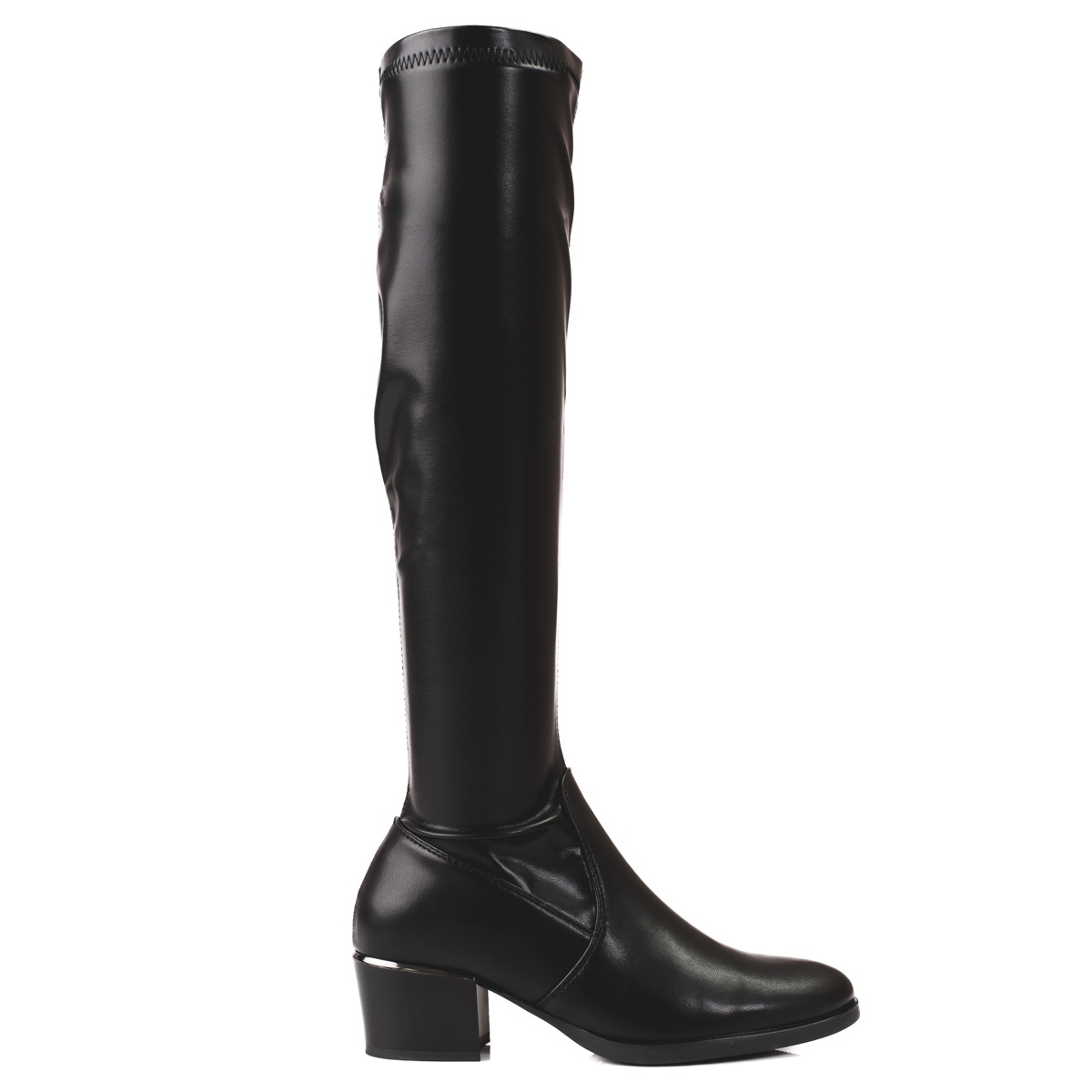 Dámské lakované kozačky Vinceza na nízkém podpatku v černé barvě jsou perfektní volbou pro každou ženu, která chce spojit eleganci s pohodlím. Klasický nadkolenní střih se zabudovaným, vyztuženým podpatkem a kulatou špičkou jim dodává jedinečný charakter a nízké podpatky vysoké 5 cm zajistí stabilitu a komfort nošení, perfektní pro každodenní nošení.