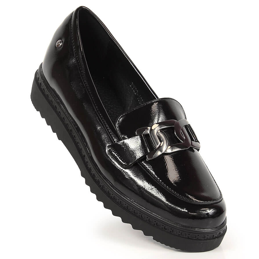 Lakované dámské mokasíny na černé platformě Vinceza černý