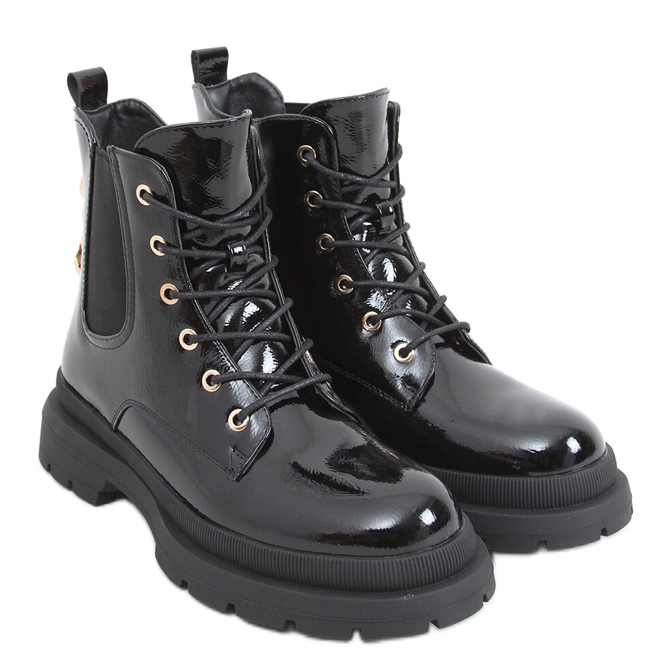 Lakované kotníkové boty s řetízkem Jake Black černý