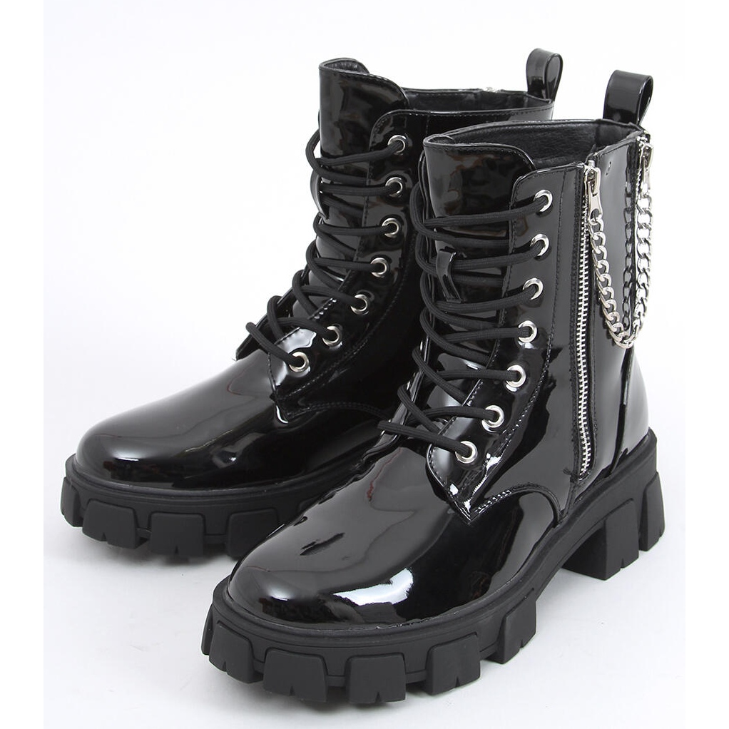 Inna marka Lakované kotníkové boty s řetízkem Mina Black černá