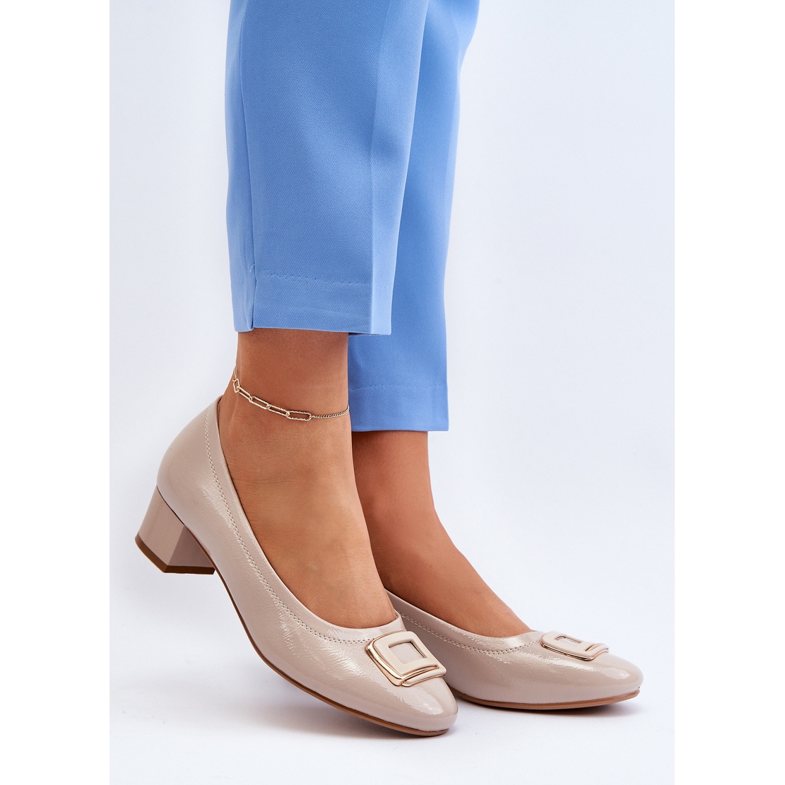 Vinceza Vinceza Lakované lodičky na bloku s ozdobou, béžová Enollia béžový