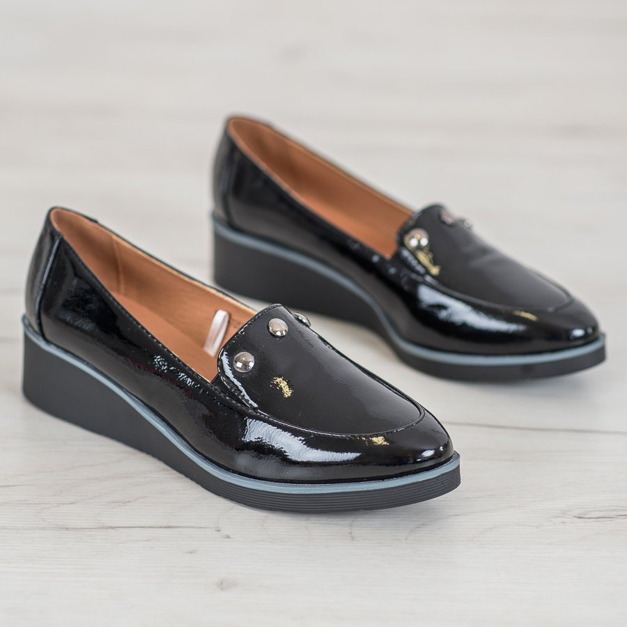Hlavními rysy těchto lodiček jsou zabudovaná, měkká pata, která zajišťuje stabilitu a komfort nošení. 4 cm vysoký podpatek v podobě klínku poskytuje noze dodatečnou oporu, což z nich dělá skvělou volbu na dlouhé dny v práci nebo na setkání s přáteli. Lodičky jsou vyrobeny z vysoce kvalitní ekologické lakované kůže, vypadají mimořádně stylově a jejich kulatá špička dodává jemné kouzlo.