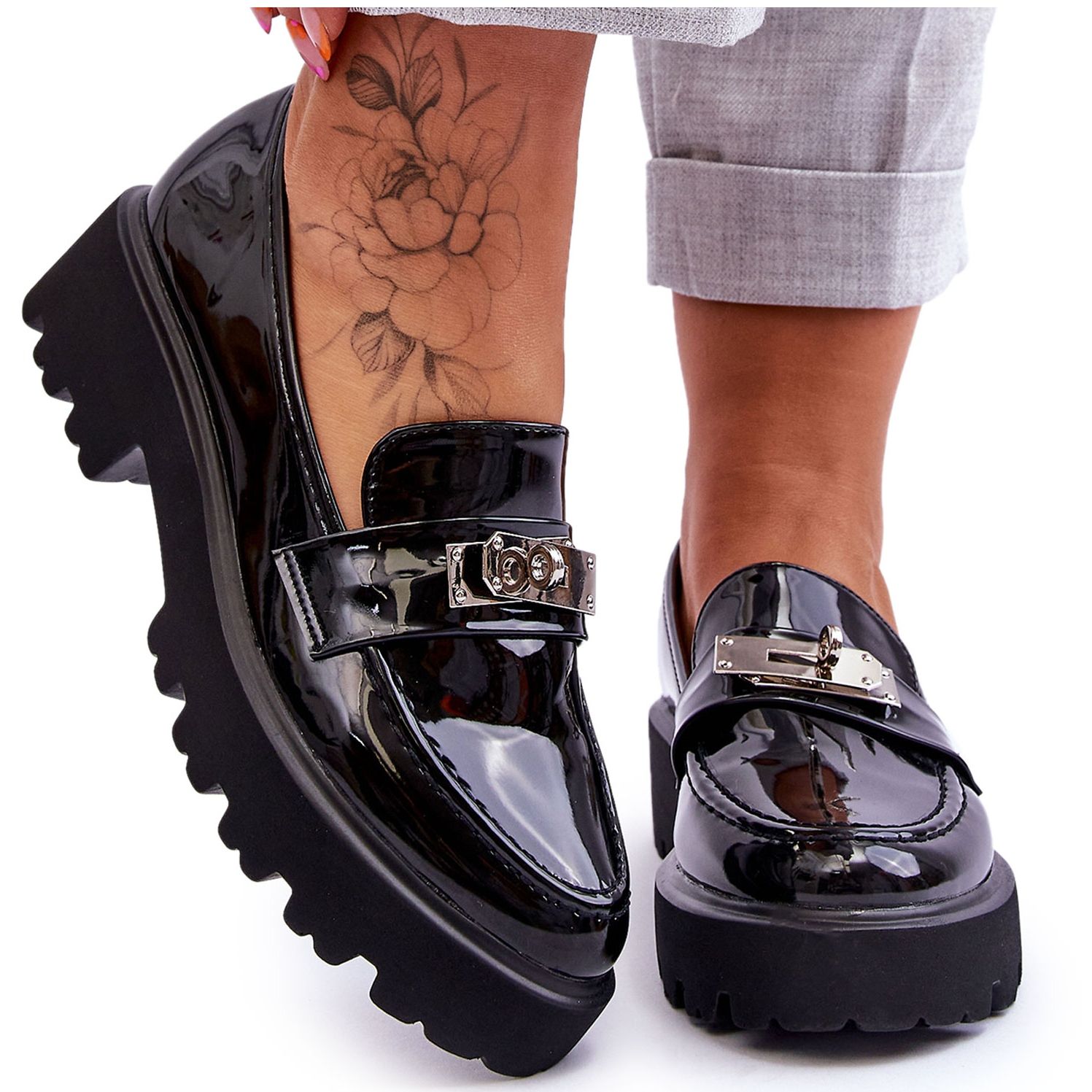 FJ1 Lakované mokasíny S Dekorací platformy Black Glory černý