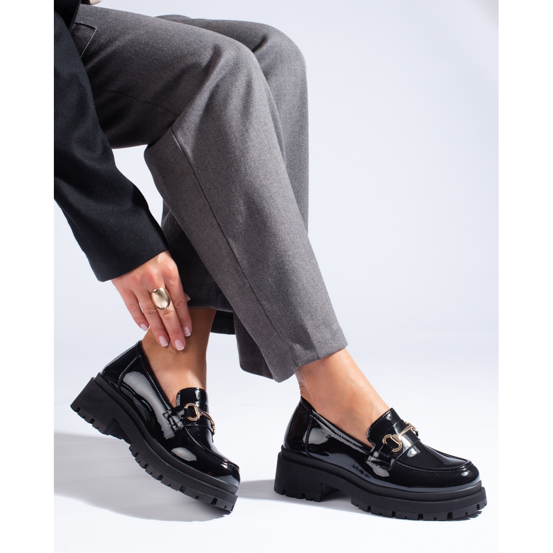 Lakované mokasíny Shelovet se silnou podrážkou černý