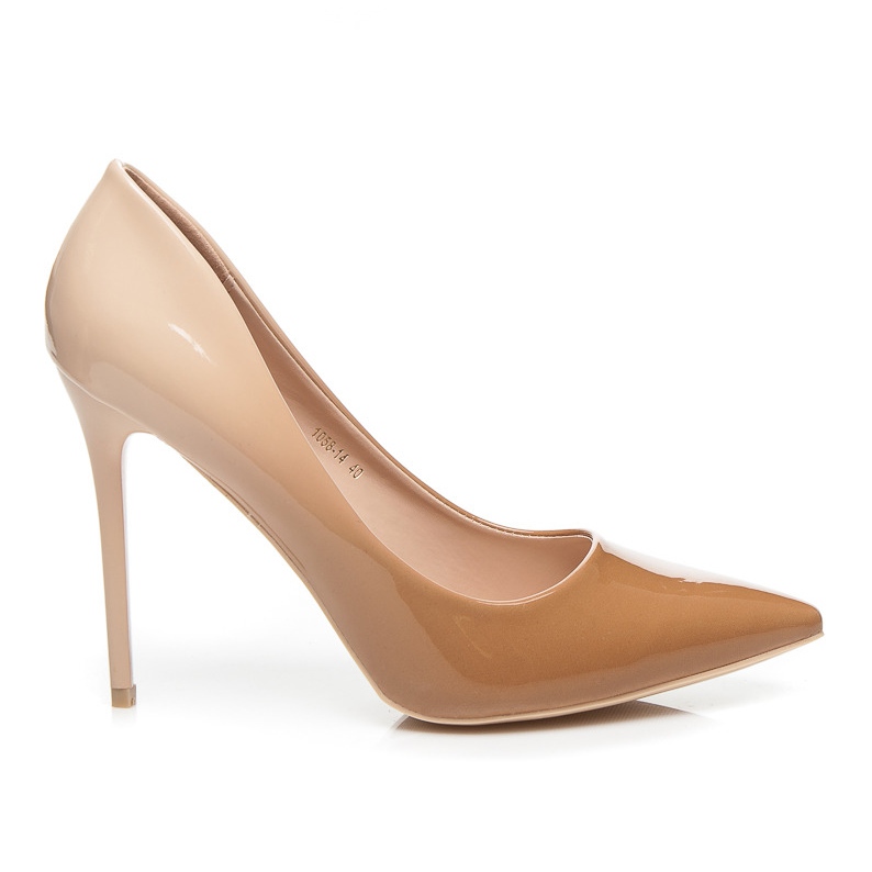 Lodičky Vices se vyznačují lakovaným povrchem, který jim dodává elegantní vzhled, a jemný přechod hnědé a béžové barvy vnáší notu modernosti a originality. Díky nazouvacímu uzávěru se snadno nazouvají, takže jsou pohodlnou volbou pro každodenní i speciální příležitosti.