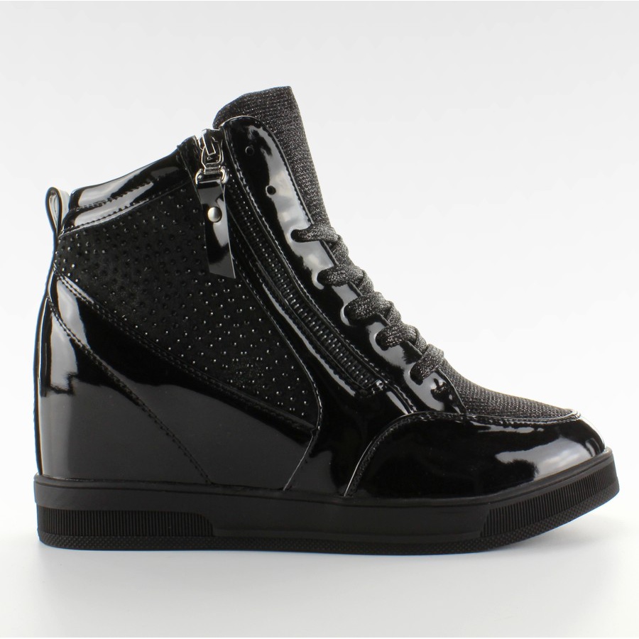 Elegantní a pohodlné dámské tenisky se skrytým klínem (7,5 cm), které zdůrazní postavu, aniž by se vzdaly pohodlí. Model kombinuje tři textury materiálu a jemné zdobení drobnými kamínky, díky čemuž působí efektně jak na denní bázi, tak i ve formálnějších stylech. Lehká konstrukce a pevné šněrování zajišťují stabilní uchycení na noze.