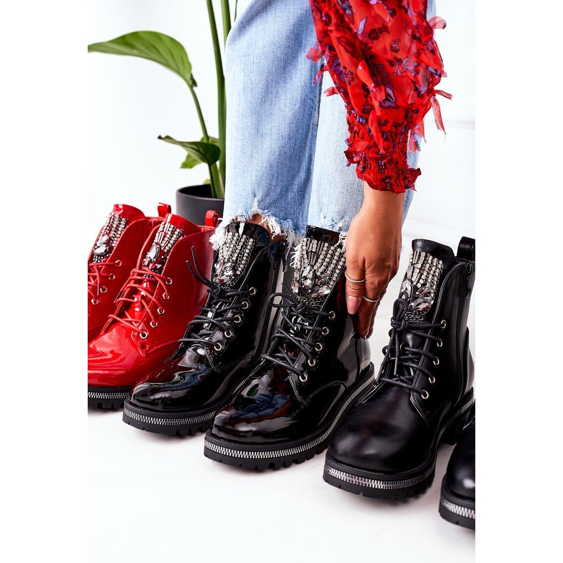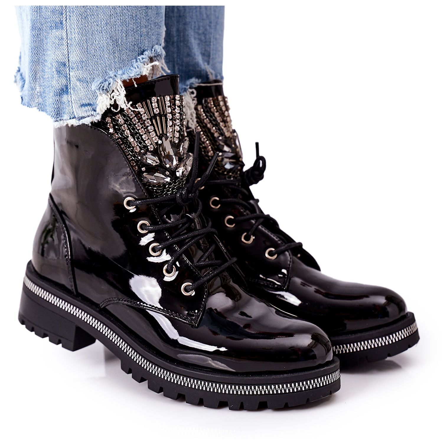 Objevte jedinečný styl a pohodlí v dámských kotníkových botách - patentované zateplené dělnické boty s kamínky Attention v klasické černé barvě. Tyto elegantní a módní kozačky jsou vyrobeny z vysoce kvalitní lakované kůže, která zajišťuje nejen atraktivní vzhled, ale také odolnost.