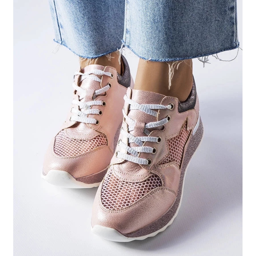 Tenisky se vyznačují módní, vysokou podešev, která nejen přidává několik centimetrů, ale také zdůrazňuje dynamickou povahu celé obuvi. Jejich vnější povlak je vyroben z přírodní kůže, která zajišťuje trvanlivost a elegantní vzhled, zatímco návrhář vloží z eko-k-kývaného proudu v krásné růžové barvě, dává jim jedinečné kouzlo.