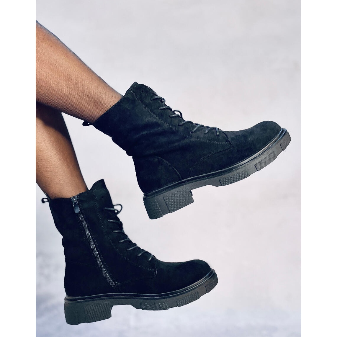 Inna marka Lavey Black semišové šněrovací kozačky černá