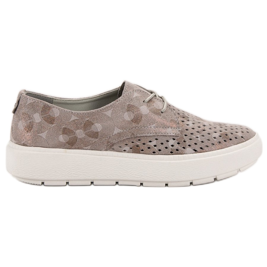 Model dostupný v tlumených odstínech hnědé a béžové se vyznačuje moderní prolamovanou povrchovou úpravou, která dodává lehkost a jedinečný charakter. Snadno se vejdou do různých stylů – od ležérních až po elegantnější, což z nich dělá oblíbený pár na jaro a léto.