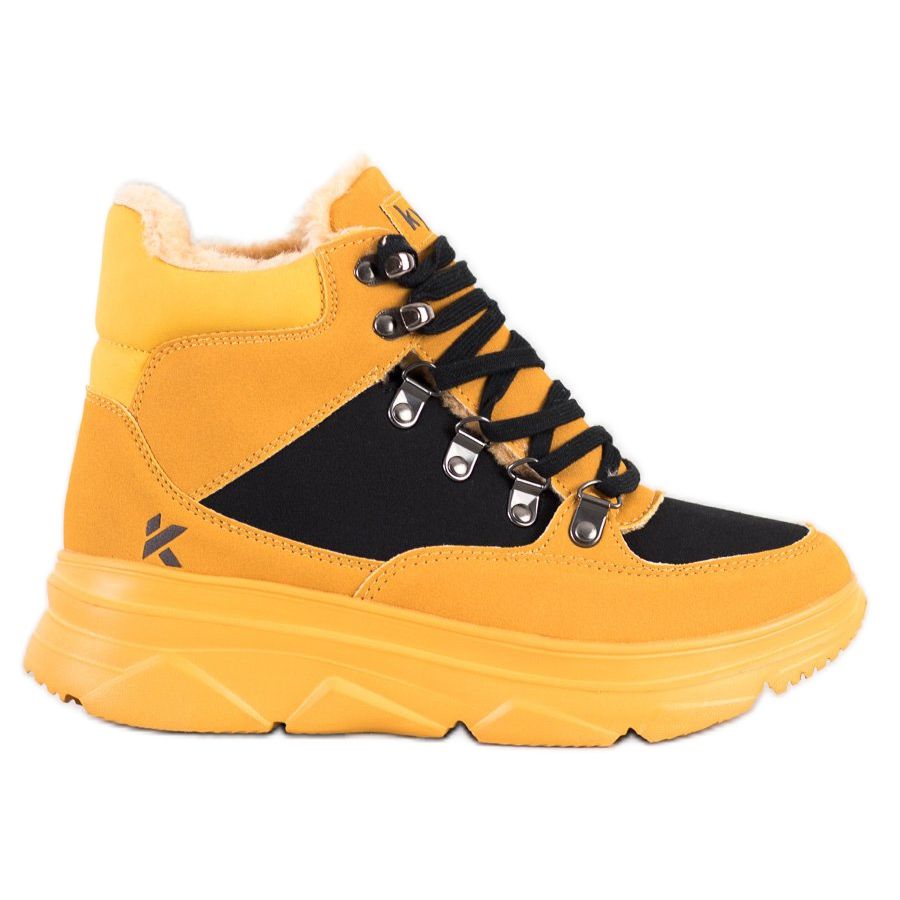 Zde je perfektní obuv pro chladnější dny – lehké, sportovní boty na platformě od Kylie. Vyznačují se módní barevnou kombinací černé a žluté, která přitahuje pozornost a skvěle zapadá do nejnovějších trendů.