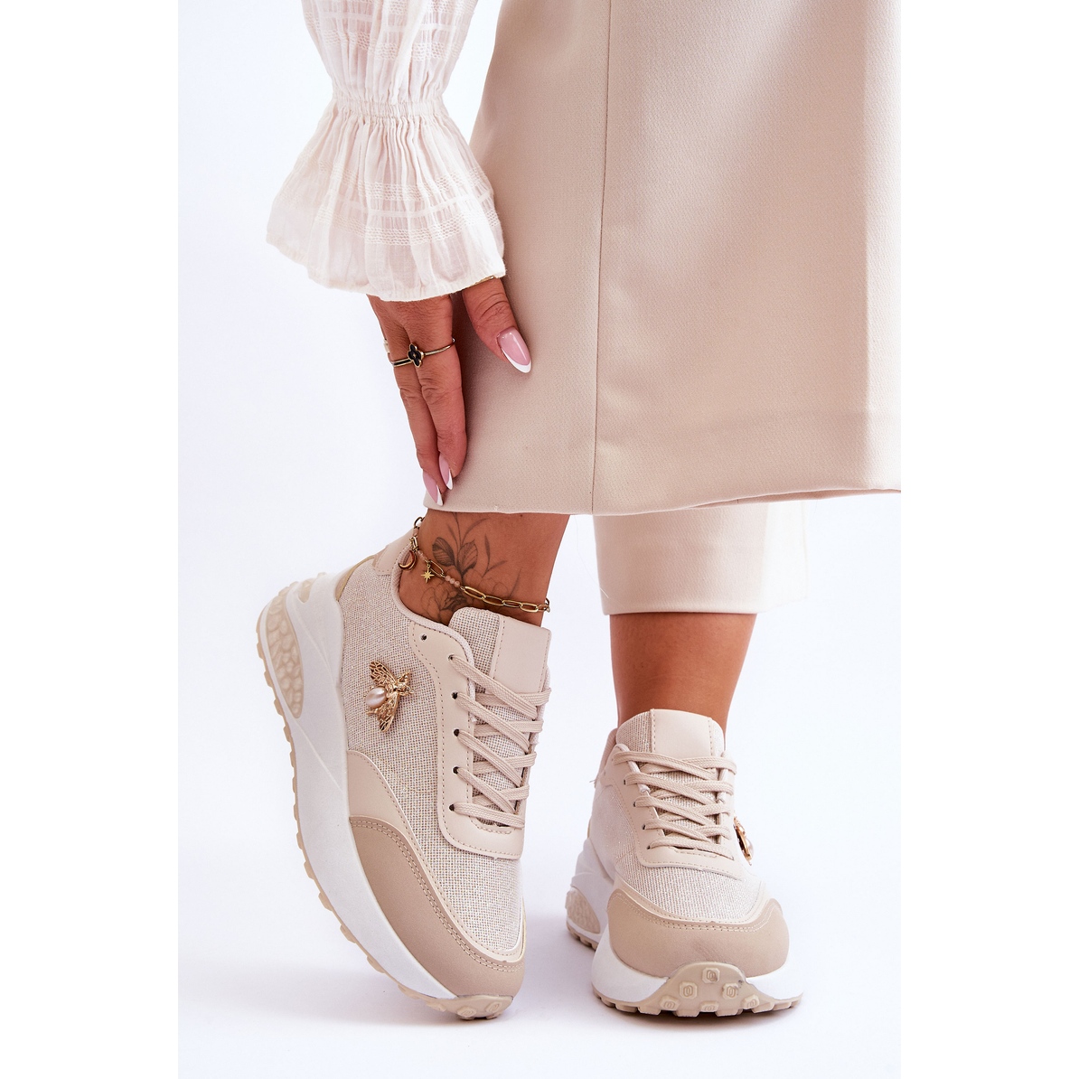Podrobnosti: PS1 Lesklá sportovní obuv s béžovým zdobením Seneca