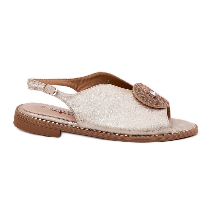 S.Barski S.Barski Lesklé dámské sandály Dekorativní detail S. Barski KV51-012 Zlotys zlatý